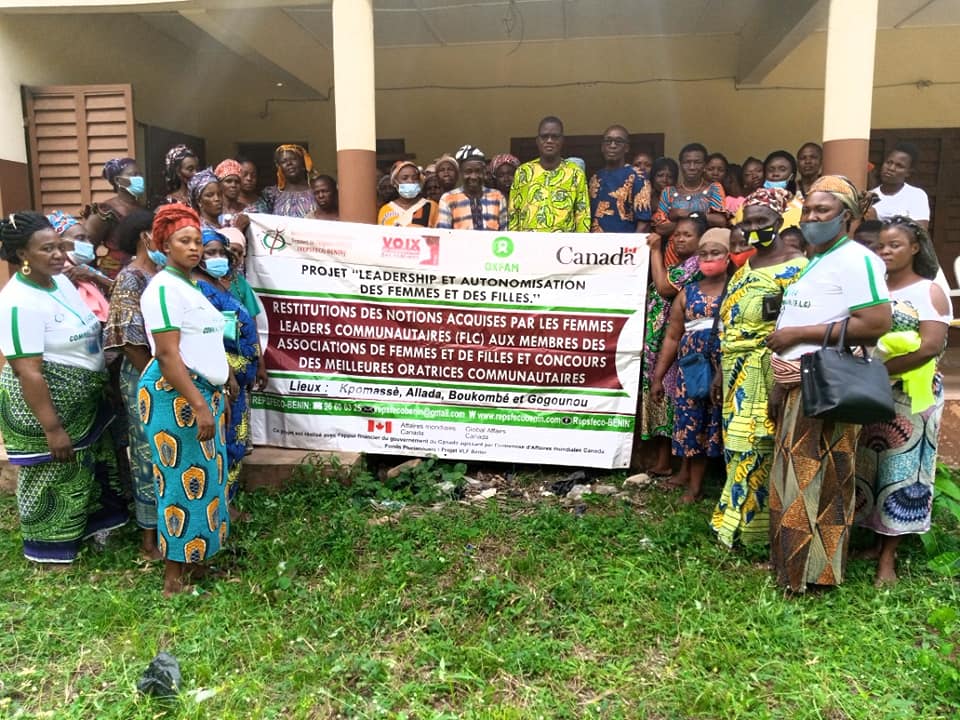 Dans le cadre de la mise en œuvre de son projet “Leadership et autonomisation des femmes et des filles” qui est l’une des initiatives du projet VLF, le REPSFECO Bénin a organisé le 17 Décembre 2021 à l’arrondissement d’Agbanto dans la commune de Kpomassè, une séance de restitution des connaissances acquises par les Femmes Leaders Communautaires (FLC. Cette séance a été suivie d’un concours d’art oratoire au bout duquel 3 femmes ont été récompensées.
